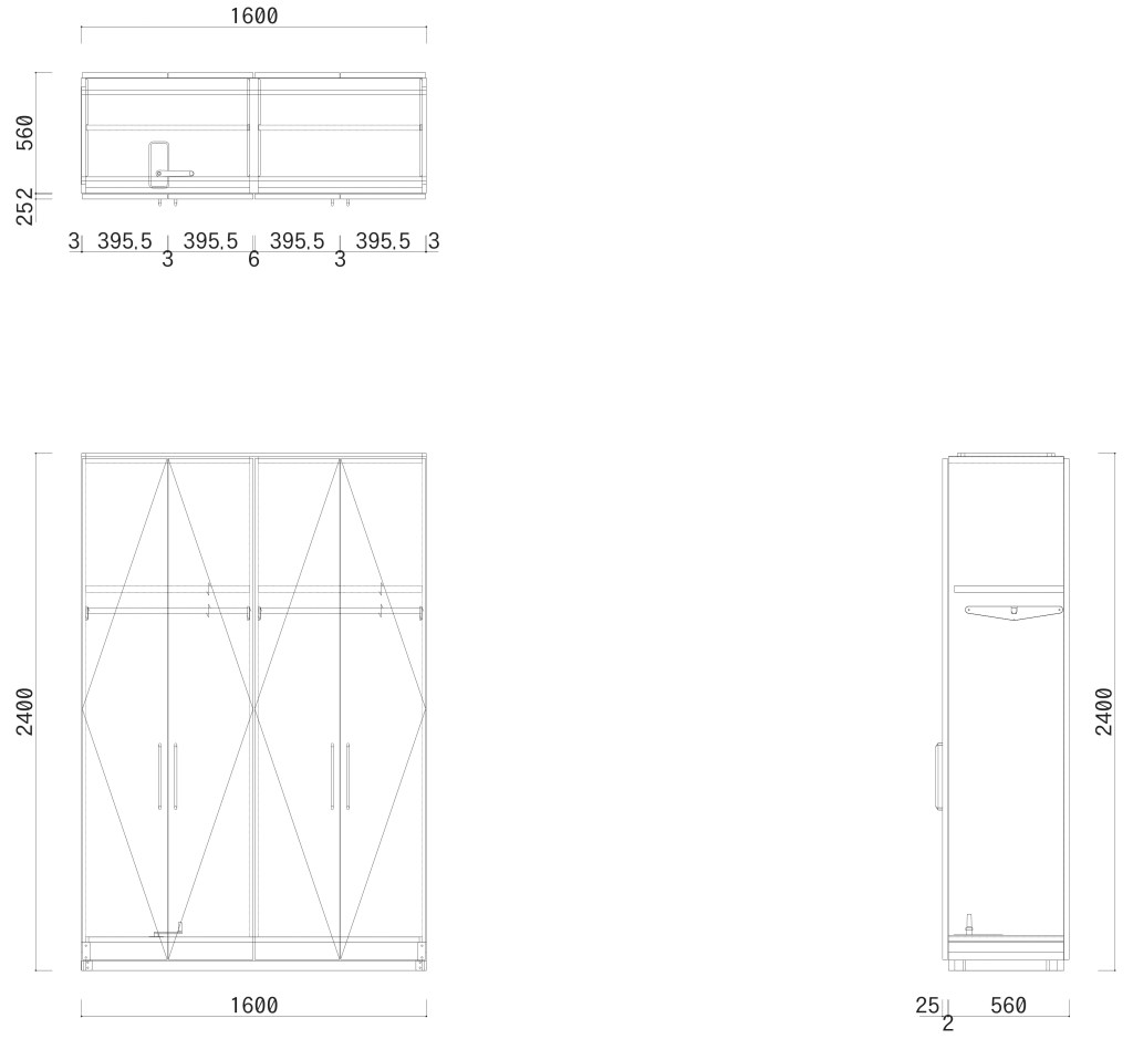 上記姿図は棚・パイプセット4枚扉×3台を想定しており、同じサイズの為、1台分のみ記載しております。